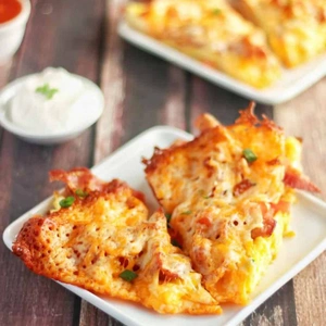 4. Opcjonalnie, danie można przyozdobić ziołami lub polać ulubionym sosem do sałatek (bez dodatku cukru), choć śmietana i salsa powinny wystarczyć.
